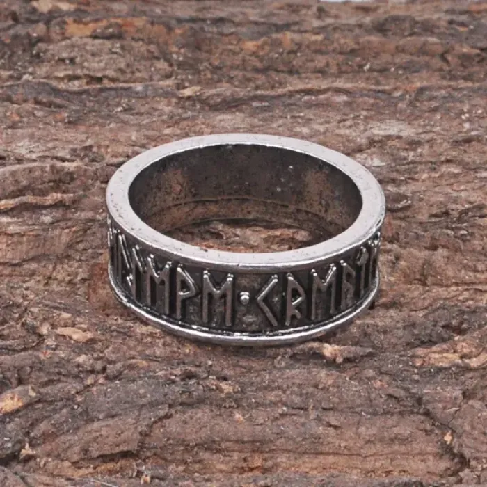 Руническое кольцо из металла с покрытием под серебро.