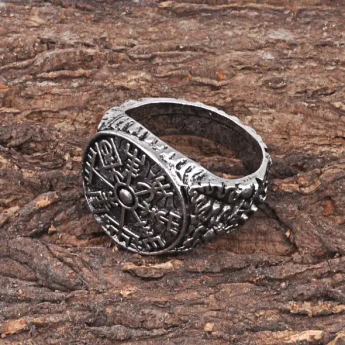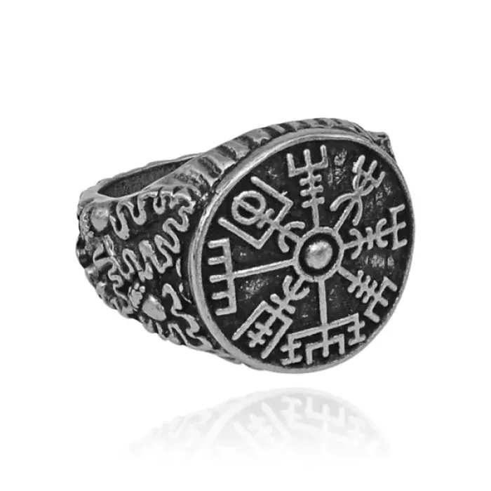 Металлическое кольцо с символом компаса Вегвизир.