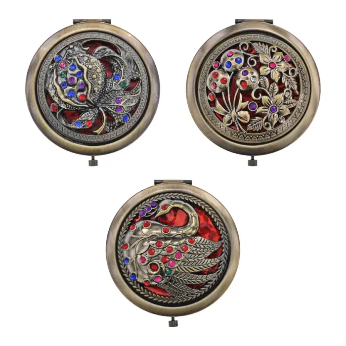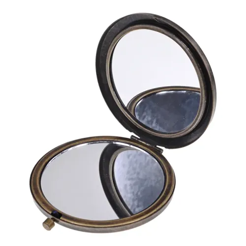 Двойное зеркало с обычным и увеличительным стеклом, диаметром 7 см, в металлическом корпусе.