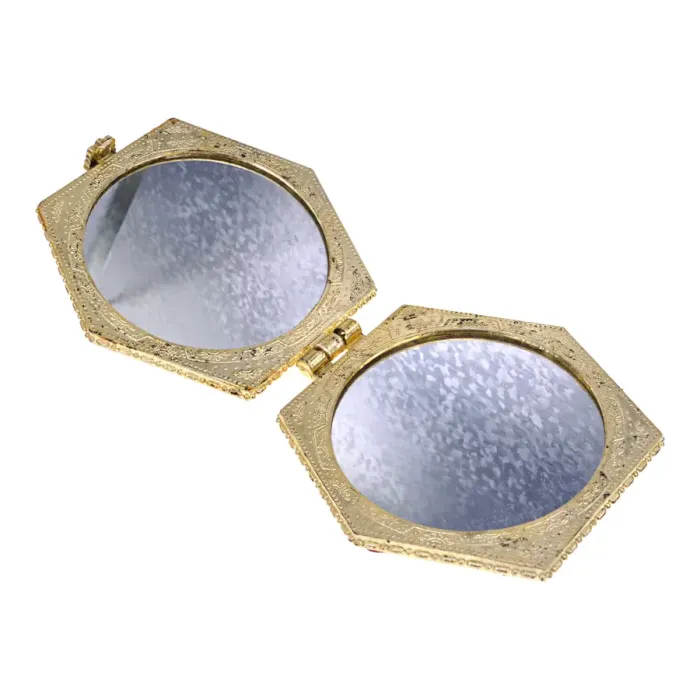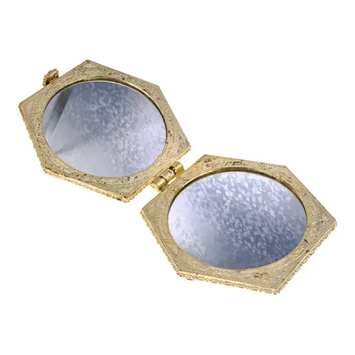 Складное зеркало шестиугольной формы из металла с декоративным покрытием.