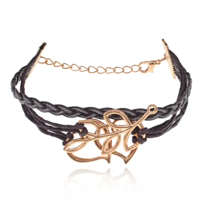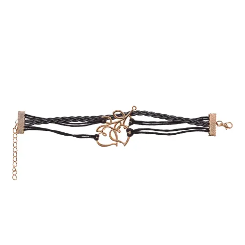 Кожаный браслет с декоративными элементами в виде ветви и двух сердец. Цвет темно-коричневый.