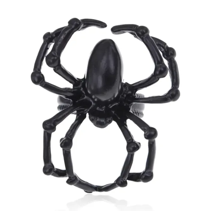 Безразмерное кольцо в виде паука черного цвета. Металлический аксессуар.