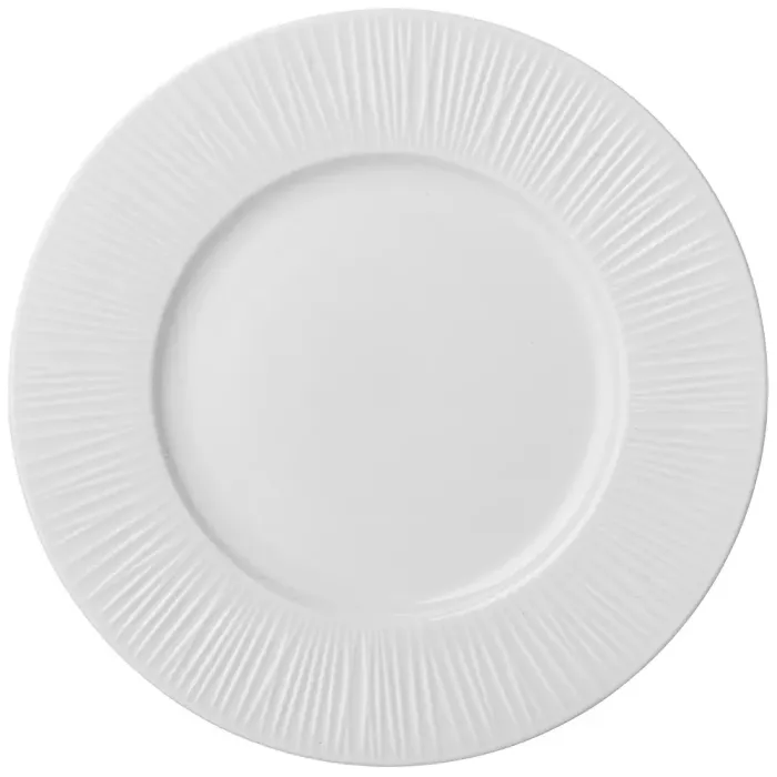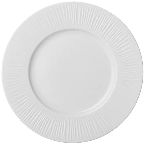 Тарелки изготовлены из фарфора, обожжённого при высокой температуре, что повышает их термостойкость и устойчивость к царапинам. Поверхность белого цвета украшена рельефным узором из радиальных линий. Дизайн сочетает современный вид с функциональной формой и оптимальным размером для десертной сервировки.