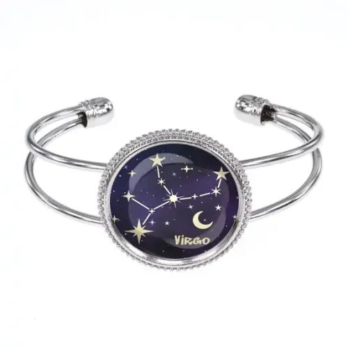 Браслет «Знаки Зодиака - Дева» — стильный аксессуар, который не только подчеркивает индивидуальность, но и символизирует мудрость и практичность. Этот уникальный браслет выполнен из бижутерного сплава с покрытием под серебро и дополнен стеклянным элементом диаметром 25 мм, защищенным выпуклой линзой. Открытая форма делает его универсальным для любого запястья. Упаковка в прозрачный пакет придает изделию завершенный вид, что делает его отличным вариантом для подарка или личного использования.
