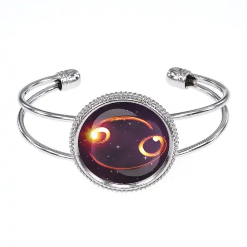 Браслет 'Знаки Зодиака - Рак' — это стильный аксессуар, который не только подчеркнёт индивидуальность, но и станет символом астрологического влияния. Изготовленный из бижутерного сплава с покрытием под серебро и стекла, он привлекает внимание своим элегантным дизайном.