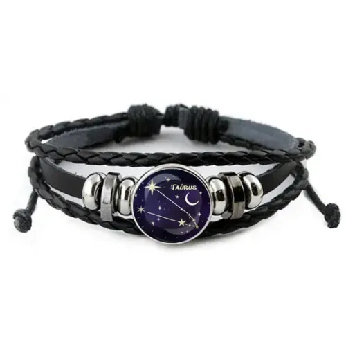 Кожаный браслет с изображением знака зодиака Тельца станет стильным аксессуаром для ценителей астрологии и уникальных украшений. Этот браслет выполнен из синтетической кожи, металла и стекла, что обеспечивает долговечность и комфорт при носке.