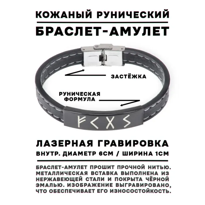 Кожаный рунический браслет Успешная реализация идей BSKR2-006