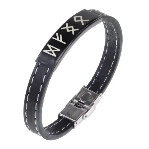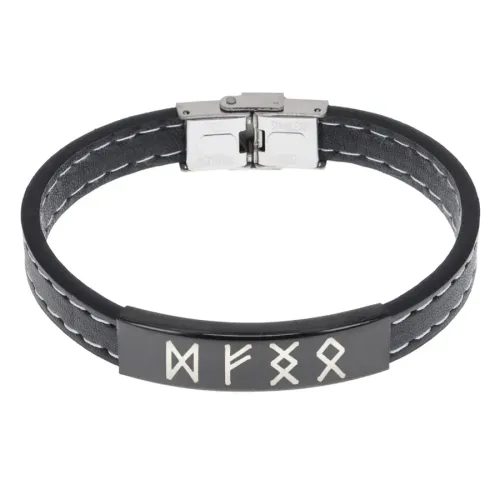 Кожаный рунический браслет Изобилие в семье BSKR2-009