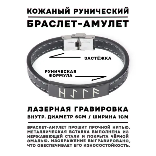 Кожаный рунический браслет с уникальной формулой, символизирующей удачу. Этот стильный аксессуар украшен рунами Хагалаз, Эйваз, Лагуз и Ансуз, которые традиционно используются для привлечения благоприятных обстоятельств. С внутренним диаметром 6 см и длиной 20,5 см он идеально подходит для комфортного ношения. Ширина браслета составляет 1 см, а его материалы — высококачественная кожа и нержавеющая сталь — гарантируют долговечность и элегантный вид. Такой браслет станет не только стильным дополнением к образу, но и символом позитивных изменений в жизни.