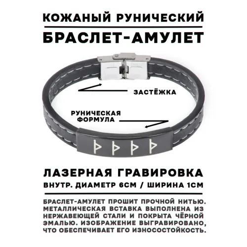 Кожаный рунический браслет Приворотное заклинание BSKR2-021