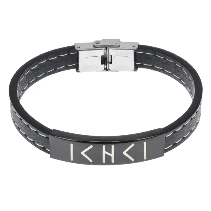 Кожаный рунический браслет с символикой. Изготовлен из кожи и нержавеющей стали.