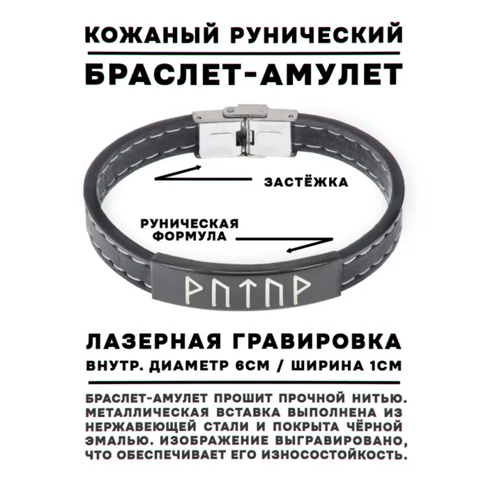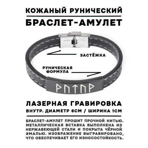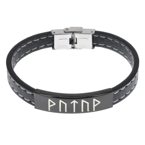 Кожаный рунический браслет с формулой из рун Вуньо, Уруз и Тейваз.