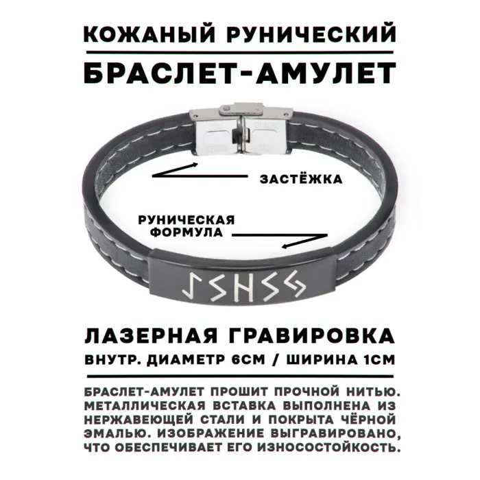 Кожаный рунический браслет Чистка и защита от негатива BSKR2-033