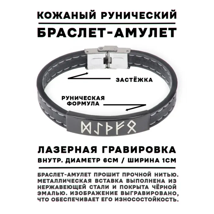 Назначение и особенности: Сувенирный или интерьерный декор. На браслет нанесены рунические символы: Дагаз, Эйваз, Турисаз, Феху, Одал.