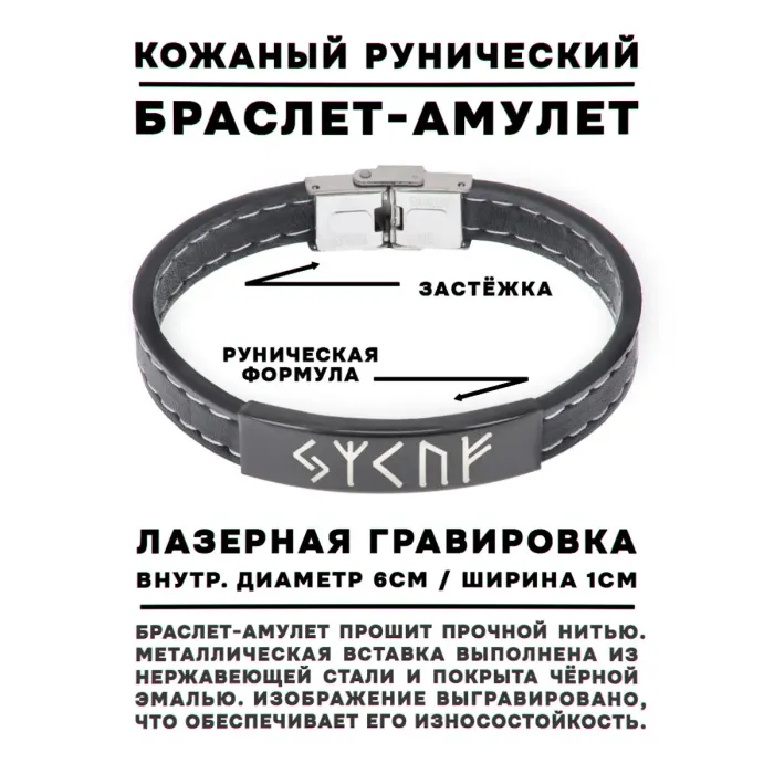 Кожаный рунический браслет Увеличение доходов BSKR2-036