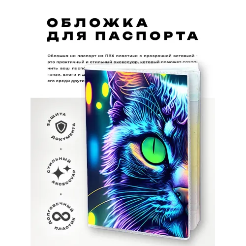 Обложка для паспорта из прозрачного ПВХ пластика — это идеальный аксессуар, который не только защитит документ от повреждений, но и добавит яркий акцент в повседневную жизнь. Симпатичный дизайн с изображением кота привнесет нотку игривости и индивидуальности. Упаковка выполнена в удобном полипропиленовом пакете с вырубкой под еврокрючок, что делает товар отличным вариантом для подарка или личного использования.
