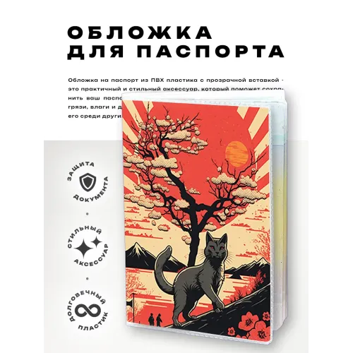 Эта обложка для паспорта с изображением японского кота — идеальный аксессуар для тех, кто ценит стиль и оригинальность. Изготовленная из прозрачного ПВХ пластика, она надежно защитит паспорт от повреждений и загрязнений. Полиграфическая вставка добавляет яркости и индивидуальности. Упакована в удобный полипропиленовый пакет с вырубкой под еврокрючок, что делает её отличным вариантом для подарка или личного использования. Обложка не только практична, но и отражает любовь к культуре Японии.