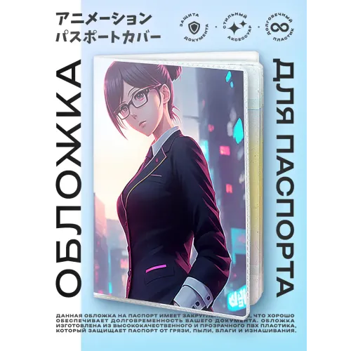 Эта обложка для паспорта выполнена из прозрачного ПВХ пластика и украшена яркой полиграфической вставкой с изображением аниме девушки в очках. Она не только защитит паспорт от повреждений, но и добавит индивидуальности владельцу. Упаковка в полипропиленовый пакет с вырубкой под еврокрючок делает её удобной для хранения или подарка. Обложка станет отличным аксессуаром для любителей аниме и стильных решений в повседневной жизни.