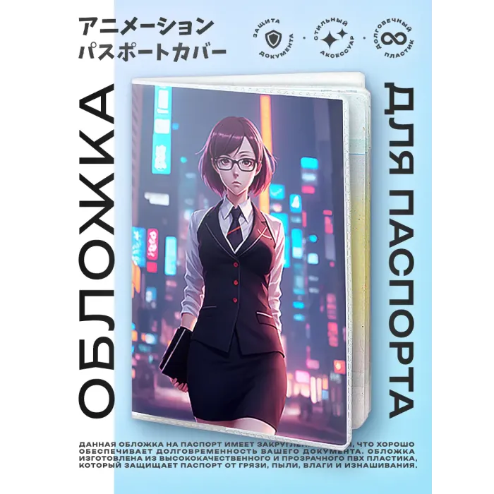 Обложка для паспорта из прозрачного ПВХ пластика с яркой полиграфической вставкой, изображающей аниме-девушку в очках. Этот стильный аксессуар не только защищает паспорт от повреждений, но и добавляет индивидуальности владельцу. Упакована в удобный полипропиленовый пакет с вырубкой под еврокрючок, что делает её идеальным вариантом для подарка или личного использования. Обложка станет отличным спутником в путешествиях и повседневной жизни, подчеркивая уникальный стиль и увлечения.