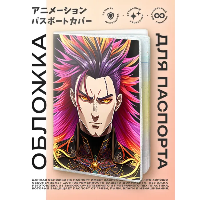 Обложка для паспорта из прозрачного ПВХ пластика — это стильный и практичный аксессуар, который не только защищает документ, но и демонстрирует индивидуальность владельца. Полиграфическая вставка с изображением аниме-персонажа добавляет яркости и оригинальности. Упаковка в полипропиленовый пакет с вырубкой под еврокрючок делает товар удобным для хранения и продажи. Этот аксессуар станет отличным подарком или дополнением к коллекции любителей аниме.