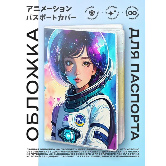 Обложка для паспорта из прозрачного ПВХ пластика — это стильный и практичный аксессуар, который не только защитит документ от повреждений, но и подчеркнет индивидуальность. С полиграфической вставкой с изображением аниме-космонавта, она станет отличным подарком для поклонников японской культуры. Упаковка в полипропиленовый пакет с вырубкой под еврокрючок делает этот товар удобным для хранения и продажи. Обложка идеально подходит как для личного использования, так и в качестве оригинального сувенира.