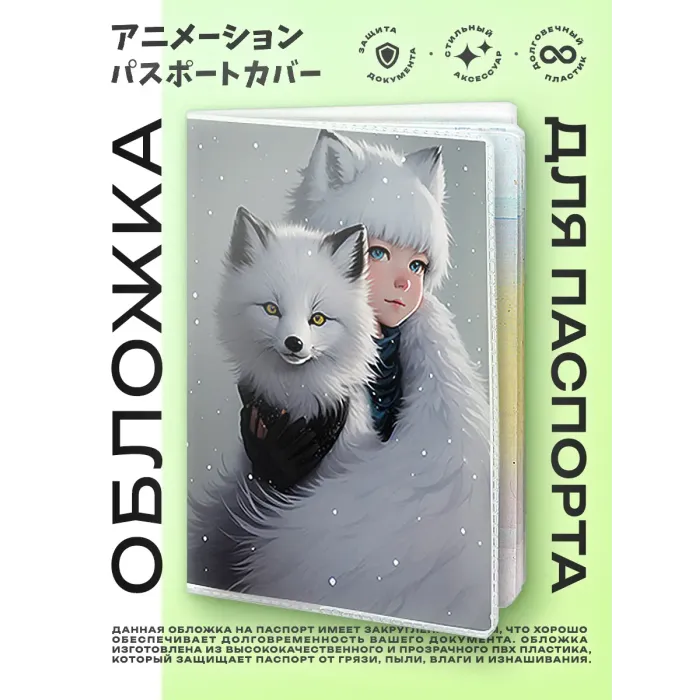 Обложка для паспорта ПВХ Аниме девушка и зверек MOB332