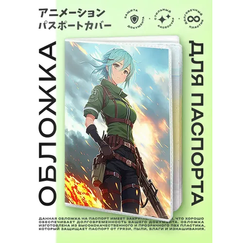 Обложка для паспорта ПВХ Аниме девушка с винтовкой MOB338