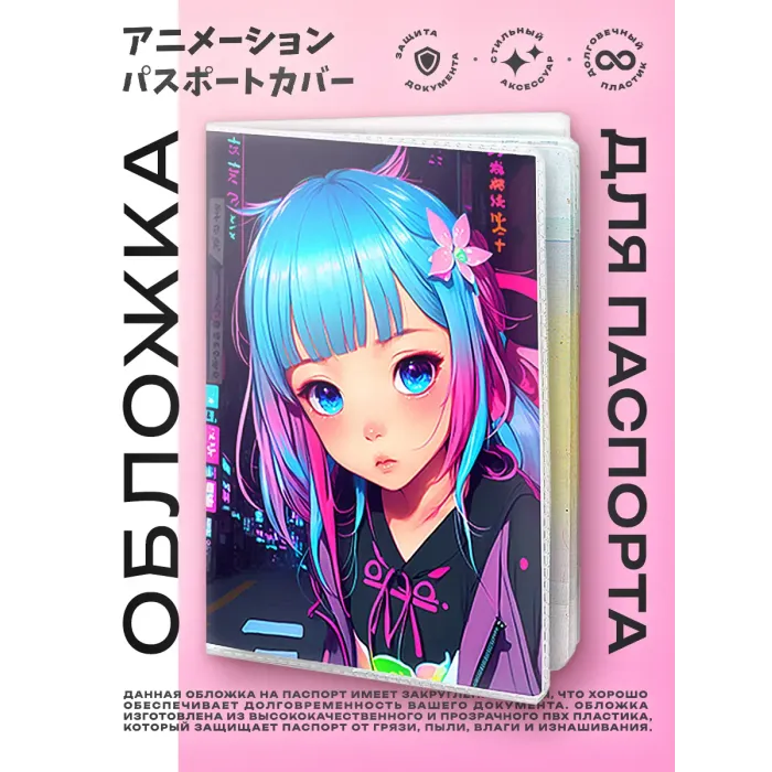 Обложка для паспорта из прозрачного ПВХ пластика с яркой полиграфической вставкой, которая добавляет индивидуальности и стиля. Этот аксессуар не только защищает паспорт от повреждений, но и подчеркивает увлечение аниме-культурой. Упаковка в полипропиленовый пакет с вырубкой под еврокрючок делает её удобной для хранения и продажи. Обложка станет отличным подарком или сувениром для любителей аниме.