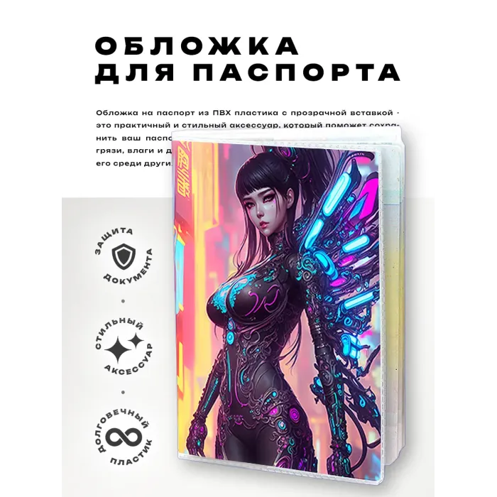 Обложка для паспорта ПВХ Киберпанк девушка MOB360