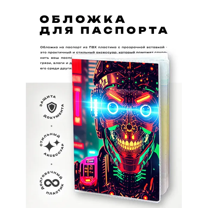 Обложка для паспорта ПВХ Киберпанк робот MOB367