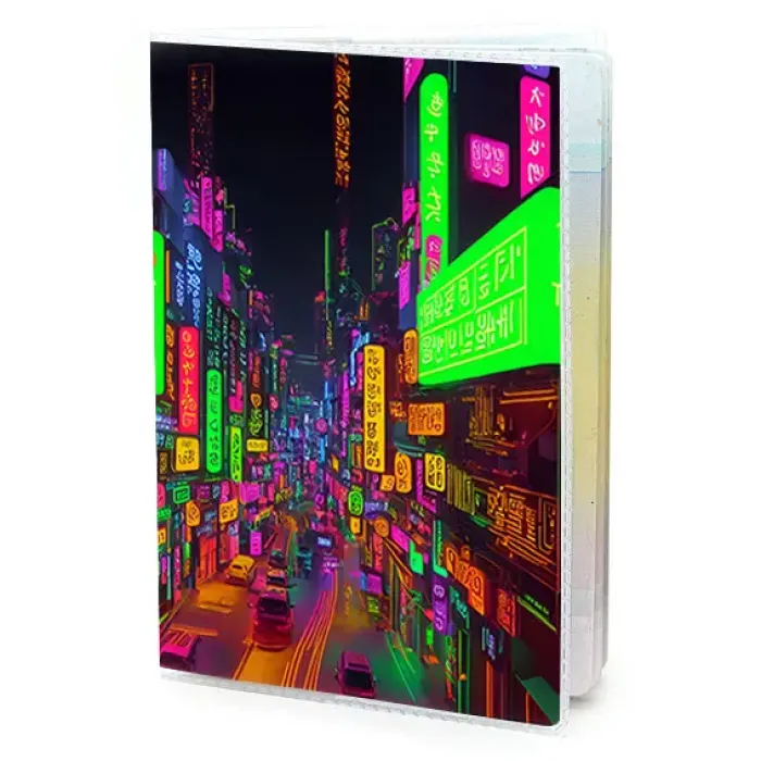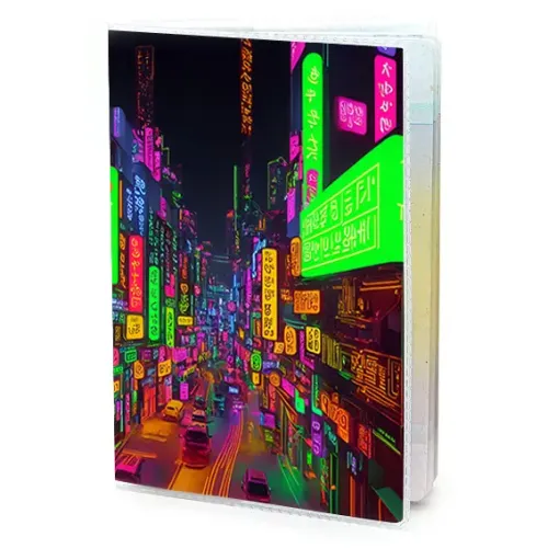 Обложка для паспорта ПВХ Киберпанк неон улица MOB369
