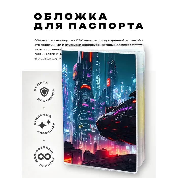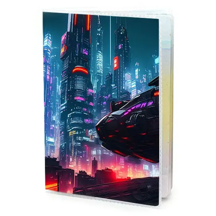 Обложка для паспорта ПВХ Киберпанк город MOB371