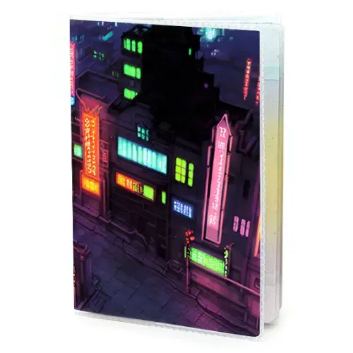 Обложка для паспорта ПВХ Киберпанк неон улица MOB374