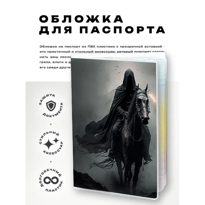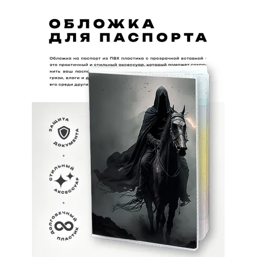 Обложка для паспорта из прозрачного ПВХ пластика с полиграфической вставкой с изображением всадника.
