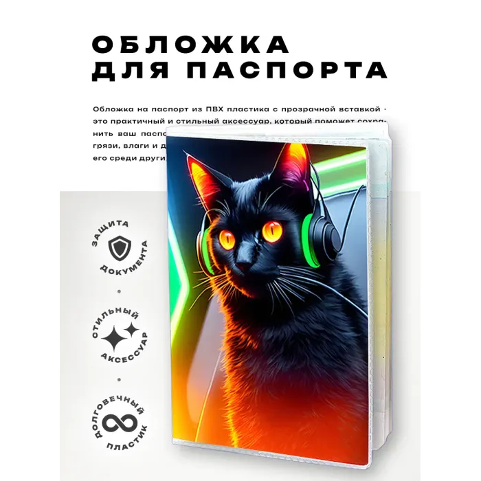 Обложка для паспорта из прозрачного ПВХ пластика — стильный и практичный аксессуар, который идеально подойдет для защиты документа. Полиграфическая вставка с изображением кота-геймера добавляет уникальности и яркости. Упаковка в полипропиленовый пакет с вырубкой под еврокрючок делает товар удобным для хранения и демонстрации на полке магазина. Такой аксессуар станет отличным подарком для любителей игр и оригинальных вещей.