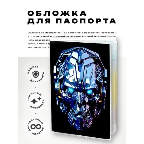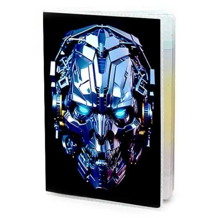 Обложка для паспорта из прозрачного ПВХ с дизайном робота в наушниках.
