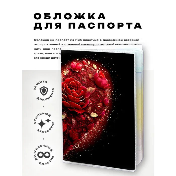 Обложка для паспорта из прозрачного ПВХ пластика с полиграфической вставкой романтического дизайна.