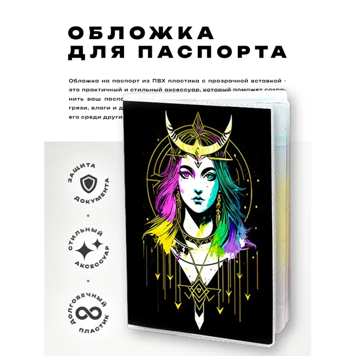 Обложка для паспорта — это стильный и практичный аксессуар, который не только защищает документ, но и добавляет индивидуальности. Изготовленная из прозрачного ПВХ пластика, она позволяет видеть паспорт, сохраняя его в целости. Полиграфическая вставка с изображением девушки-ловца снов придаёт обложке уникальный вид и символизирует мечты и надежды. Упаковка в полипропиленовый пакет с вырубкой под еврокрючок делает её удобной для хранения или подарка. Этот аксессуар станет отличным спутником в путешествиях и повседневной жизни.