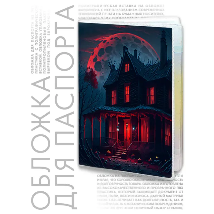 Обложка для паспорта из прозрачного ПВХ пластика — это стильный и практичный аксессуар, который не только защитит документ, но и добавит оригинальности. Полиграфическая вставка с изображением дома с привидениями придаёт изделию уникальный шарм, отражая атмосферу таинственности и веселья. Упаковка в полипропиленовый пакет с вырубкой под еврокрючок делает обложку удобной для хранения и демонстрации в магазине. Такой аксессуар станет отличным подарком или сувениром на любой праздник.