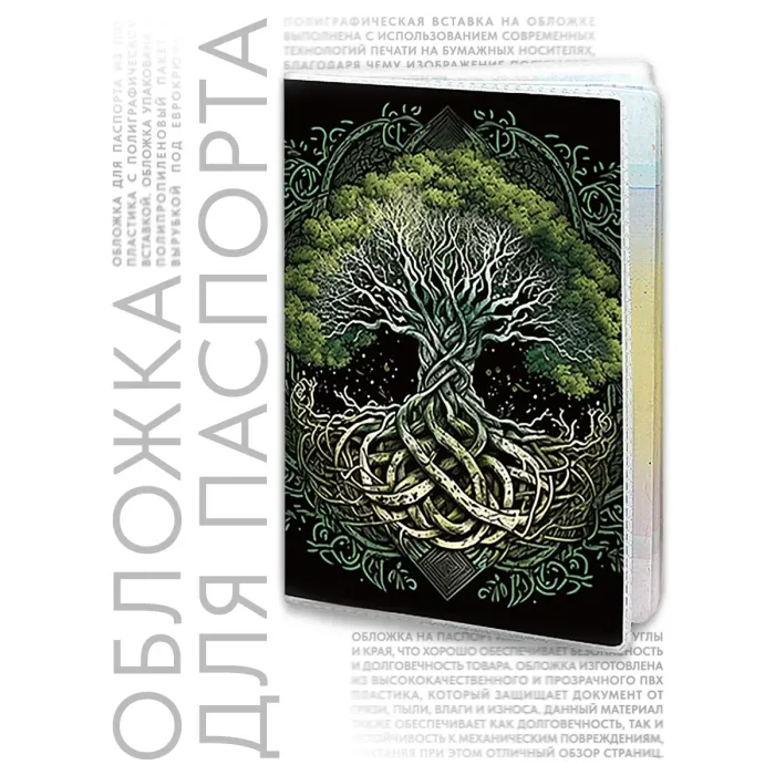 Обложка для паспорта из прозрачного ПВХ пластика с полиграфической вставкой «Дерево жизни».