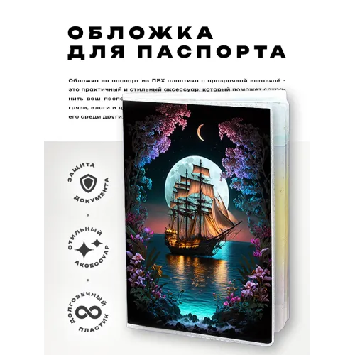 Обложка для паспорта ПВХ Ночной парусник MOB497