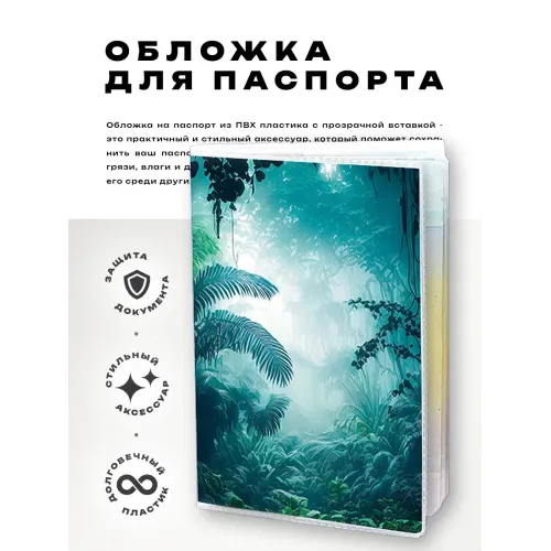 Обложка для паспорта из прозрачного ПВХ пластика — идеальный аксессуар для защиты документа. Яркий дизайн с полиграфической вставкой в стиле джунглей придаёт уникальность и стиль. Упаковка выполнена в удобном полипропиленовом пакете с вырубкой под еврокрючок, что делает её отличным вариантом для подарка или личного использования. Обложка не только защищает паспорт от повреждений, но и добавляет ярких красок в повседневные моменты путешествий.