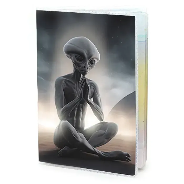 Обложка для паспорта из прозрачного ПВХ пластика с полиграфической вставкой дизайна «Внеземная медитация».