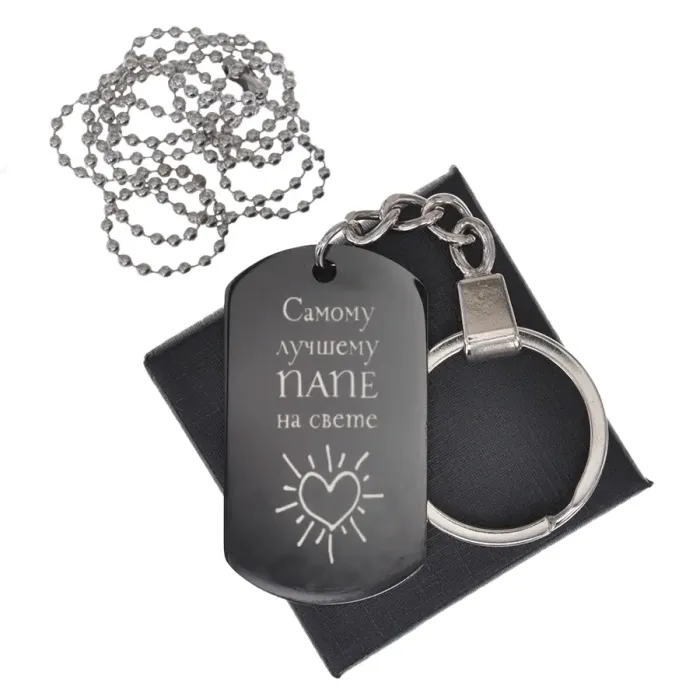 Размеры и комплектация: Размер жетона 49х28 мм. В комплекте кольцо для ключей и шариковая цепочка.