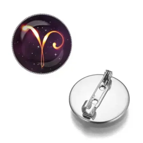 Значок Знаки Зодиака - Овен является стильным аксессуаром, который символизирует силу и уверенность. Он выполнен из бижутерного сплава с покрытием под серебро и стекла, что придаёт изделию элегантный вид. Диаметр значка составляет 26 мм, а изображение защищено выпуклой стеклянной линзой, что обеспечивает его долговечность и яркость цветов.