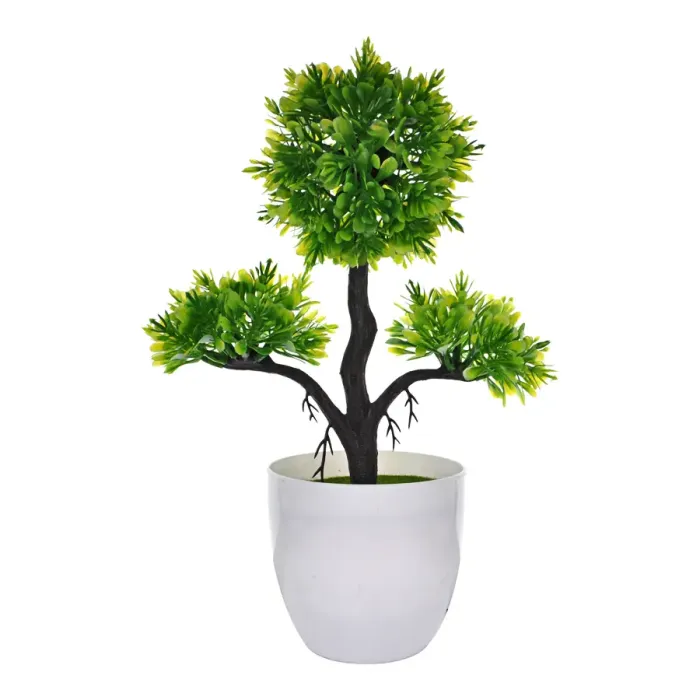 Искусственное растение бонсай в горшке для интерьерного декора. Изготовлено из пластика.