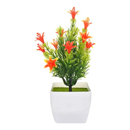 Искусственное растение бонсай в виде лилий в горшке для интерьерного декора. Цвет оранжевый.