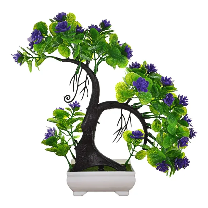 Искусственное растение бонсай в горшке для интерьерного декора. Материал — пластик, цвет фиолетовый.