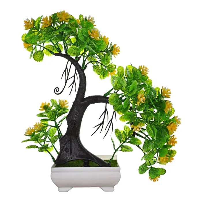 Искусственное растение Бонсай в горшке. Материал — пластик, цвет желтый.
