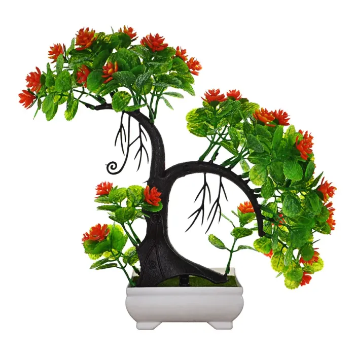 Искусственное растение бонсай в горшке для интерьерного декора. Материал — пластик, цвет оранжевый.